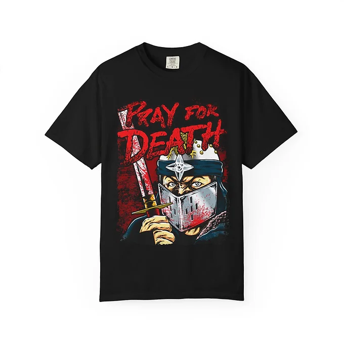 Step into the shadows and embrace the chaos with the “Pray for Death” Retro Ninja Tee—a bold homage to the gritty, action-packed world of 1980s ninja cinema. Featuring a dramatic ninja graphic on the front, this shirt captures the look and feel of classic VHS-era martial arts flicks. With vintage styling, neon highlights, and a fierce warrior ready for battle, it’s designed for fans who live for that old-school, over-the-top energy.